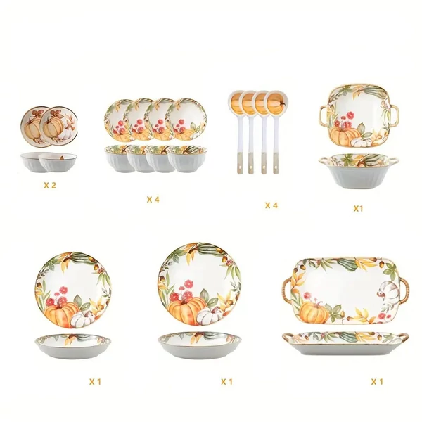 14-dielna Keramická Jedálenská Súprava s Tekvicovým Motívom NF200763-2