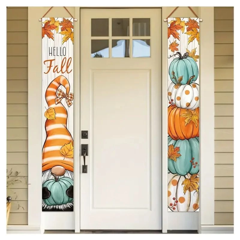 Privítajte jesennú sezónu štýlovo s touto 2-dielnou veľkou verandovou girlandou! Veselá postavička škriatka, tekvice a javorové listy vytvárajú priateľskú atmosféru, takže dekorácia je ideálna na dvere, do záhrady alebo na verandu.