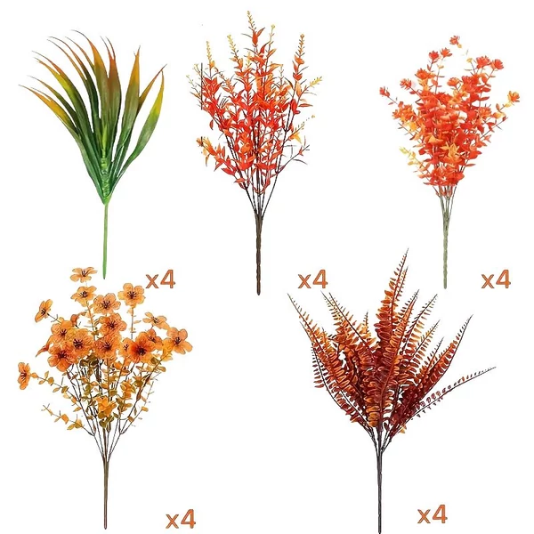 Oživte svoj domov alebo záhradu atmosférou jesennej sezóny! Táto 20-dielna súprava umelých kvetov žiari v odtieňoch oranžovej, červenej a žltej, ktoré poskytujú realistickú a trvácnu dekoráciu do každého prostredia. Nevyžaduje zalievanie ani starostlivosť, no počas celej sezóny vyzerá nádherne.