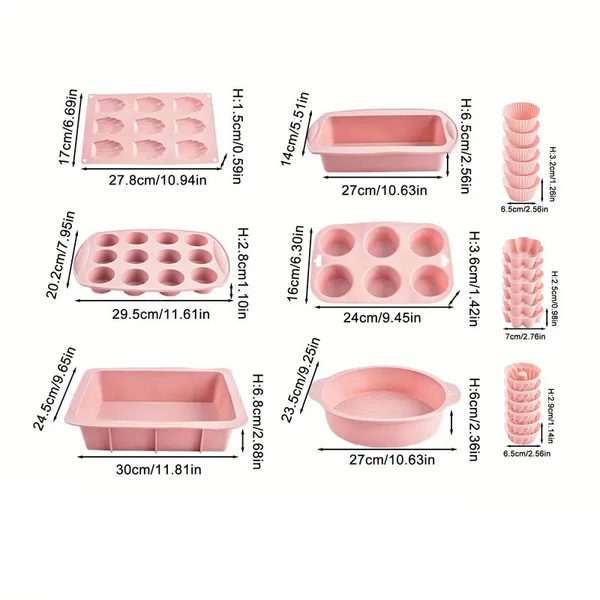 Táto všestranná sada silikónových foriem na pečenie obsahuje všetko, čo potrebuješ v kuchyni. Vďaka rôznym veľkostiam a tvarom si ľahko pripravíš svoje obľúbené koláče, muffiny, pudingy či dokonca domáci chlieb. Je ideálnou voľbou na rodinné oslavy, narodeninové párty alebo každodenné pečenie.