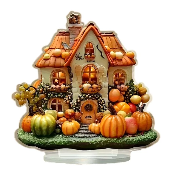 Táto jedinečná 2D akrylová dekorácia zobrazuje pôvabný tekvicový domček s detailnou farebnou potlačou. Je ideálnym doplnkom do domácnosti, kancelárie alebo kaviarne, kde vytvorí priateľskú a útulnú atmosféru.