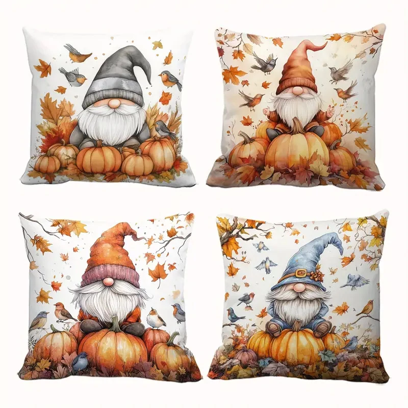 Oživte svoj domov, terasu alebo kanceláriu týmito štýlovými jesennými obliečkami na vankúše! Veselé postavičky škriatkov, tekvice a jesenné lístie vytvárajú pravú sezónnu atmosféru, ideálne na Halloween, Deň vďakyvzdania alebo len ako jesennú dekoráciu.