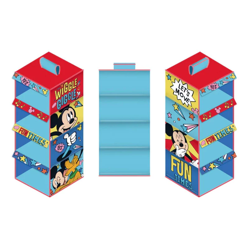 Praktický a veselý organizér do skrine s motívom Mickey Mouse od Disney, ktorý pomáha udržiavať detskú izbu upratanú. Má štyri priestranné priehradky, ideálne na uloženie hračiek, oblečenia alebo doplnkov. Keď sa nepoužíva, dá sa ľahko zložiť, čím ponúka priestorovo úsporné riešenie pre každú skriňu.