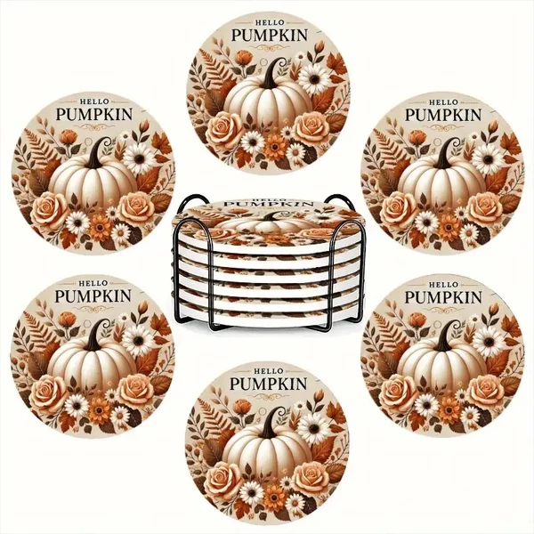 6-dielna jesenná súprava keramických podložiek – s motívom tekvíc a kvetov PU2393247