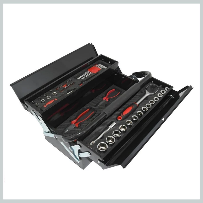 Kompaktná a odolná sada náradia uložená v pevnom kovovom kufríku, ideálna na domáce aj profesionálne použitie. Vhodná na opravy, montáže a bežné údržbové práce.