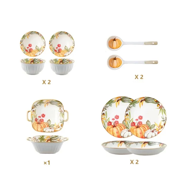7-dielna Keramická Jedálenská Súprava s Tekvicovým Motívom NF200763