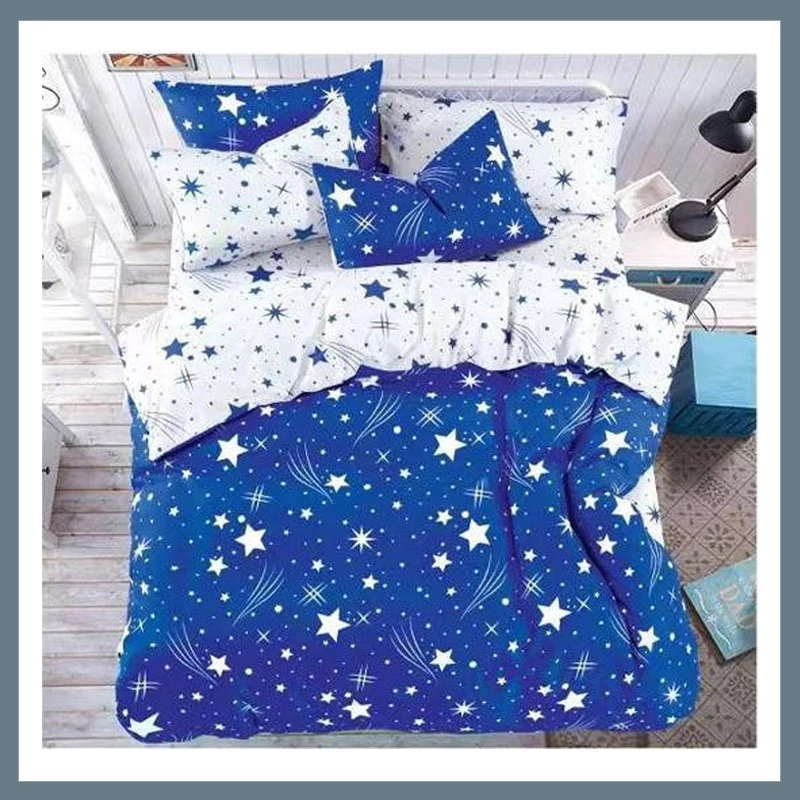 7-dielna súprava posteľnej bielizne PLÜSS, vzor padajúcich hviezd, tmavomodrá HCS-S