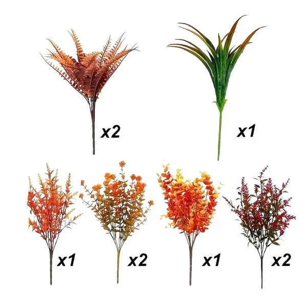 Oživte svoj domov alebo záhradu touto 9-dielnou sadou UV-odolných umelých kytíc, ktoré žiaria realistickými jesennými farbami. Listy a vetvičky v odtieňoch oranžovej, žltej a červenej dokonale vystihujú krásu jesennej prírody, takže sú ideálne na ozdobenie okenných rámov, balkónov, záhrad či krbových ríms.