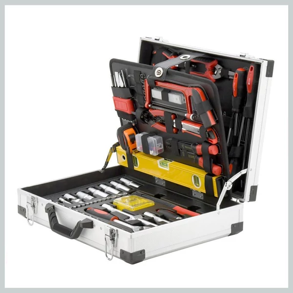 Všestranná a praktická súprava náradia určená pre domácich majstrov aj profesionálov. Všetky komponenty sú uložené v pevnom hliníkovom kufri s viacerými poschodiami, čo zabezpečuje systematickosť a jednoduché prenášanie.
