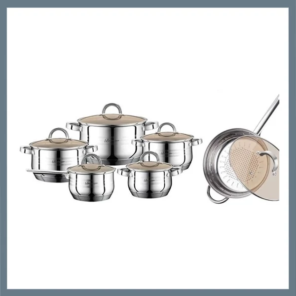 Vysokokvalitná a elegantná 12-dielna súprava hrncov Bachmayer BM-1205 je ideálnou voľbou pre každodenné varenie. Vyrobená z odolnej nehrdzavejúcej ocele, s viacvrstvovým sendvičovým dnom pre rýchly a rovnomerný ohrev. Vhodná pre všetky typy sporákov, vrátane indukcie.
