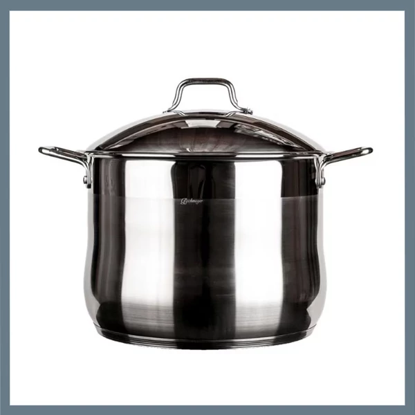 Veľkokapacitný nerezový hrniec Bachmayer BM-3426 s objemom 22 litrov je ideálny na prípravu polievok, zaváranie, varenie vo veľkom množstve alebo používanie na spoločenských podujatiach. Vyrobený z kvalitnej nehrdzavejúcej ocele s pevnou kovovou pokrievkou, je odolný, hygienický a vhodný na všetky typy sporákov vrátane indukcie.