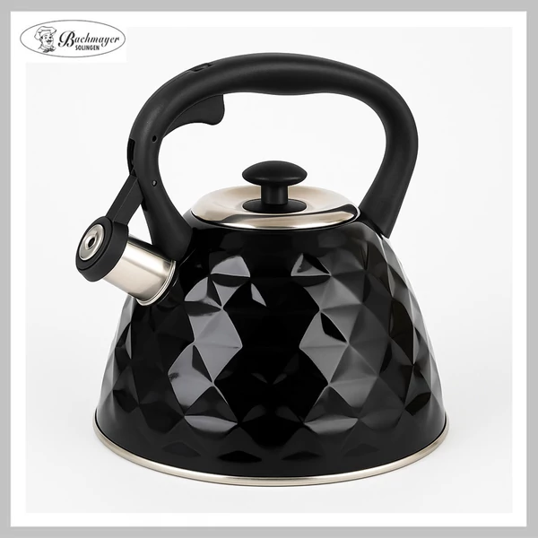 Štýlová a odolná nerezová čajová kanvica Bachmayer BMK-01 s objemom 3 litre je vhodná na každodenné použitie v domácnosti. Moderný dizajn s čiernym lesklým povrchom, ergonomická rukoväť a píšťalka z nej robia praktický a elegantný doplnok každej kuchyne.