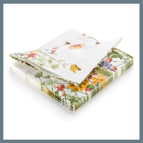Papierové servítky s dekorom lúky, trojvrstvové, s rozmermi 33 × 33 cm. Balenie obsahuje 20 kusov. Tieto servítky sú nevyhnutnou súčasťou nielen slávnostného stolovania, ale aj praktickým pomocníkom pri každodennom používaní – napríklad pri príprave desiaty do školy alebo na výlety.