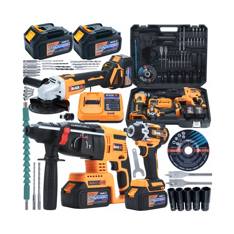 Profesionálna aj hobby súprava vhodná pre každého, kto potrebuje všestranný akumulátorový nástrojový set. Súprava obsahuje uhlovú brúsku, aku skrutkovač, vŕtačku/kladivo, a množstvo príslušenstva. Dve vysokokapacitné Li-Ion batérie 21V 4000 mAh zaručujú dlhú výdrž, rýchla nabíjačka umožňuje nepretržitú prácu. Výkonné bezuhlíkové (brushless) motory poskytujú spoľahlivý výkon aj pri intenzívnom používaní.