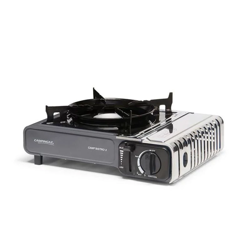 Campingaz Camp Bistro 3 je kompaktný, ale výkonný kempingový varič s výkonom 2,2 kW, čo z neho robí ideálnu voľbu na výlety, kempovanie, dovolenky alebo dokonca varenie vonku. Je ľahko prenosný, stabilný a zmestí sa na každý stôl.
