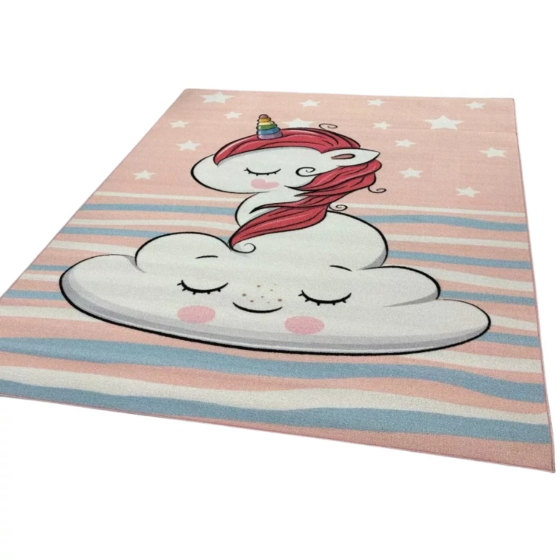 Detský koberec s motívom Unicornis je krásnym doplnkom do každej detskej izby! Veselý motív jednorožca a obláčikov v pastelových farbách vytvára pokojnú a priateľskú atmosféru, zatiaľ čo mäkký povrch a bezpečné materiály zaručujú pohodlné hranie.