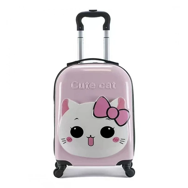 Detský kufor na kolieskach – ružový s motívom mačičky WP06