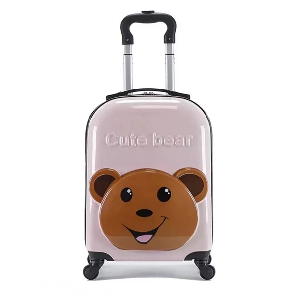 Detský kufor na kolieskach – ružový s motívom medvedíka, so zámkom WP05