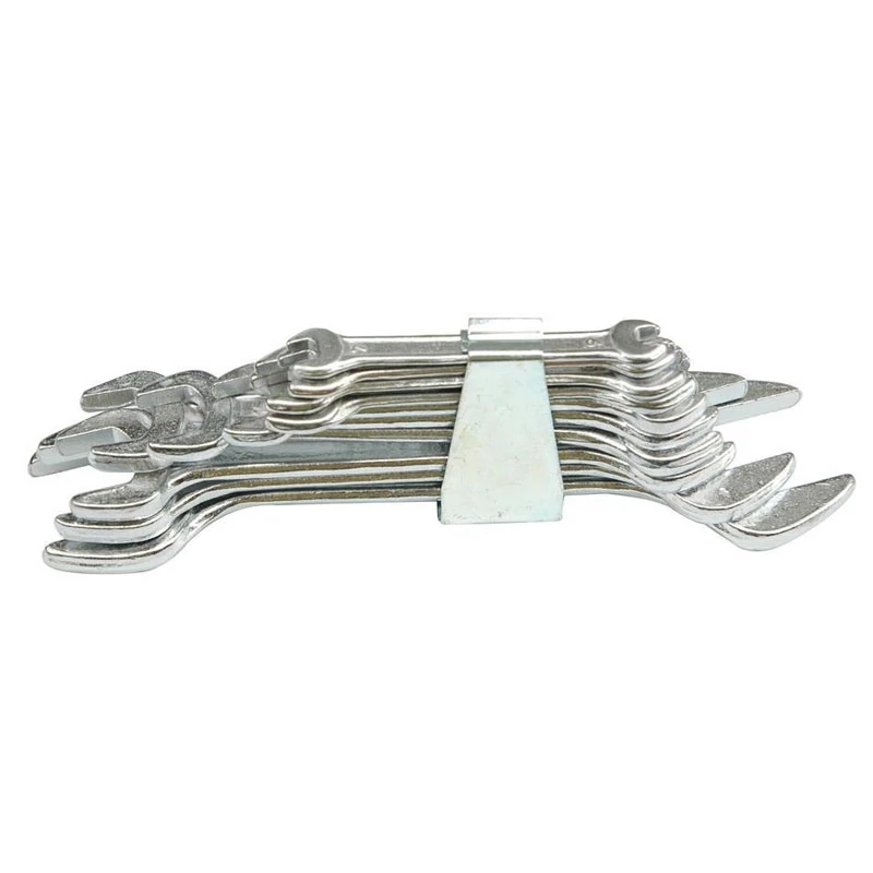 Táto 10-dielna sada vidlicových kľúčov je nevyhnutným nástrojom pre každú dielňu aj domácnosť. Kľúče sú dvojstranné, takže jeden nástroj ponúka dve rôzne veľkosti.