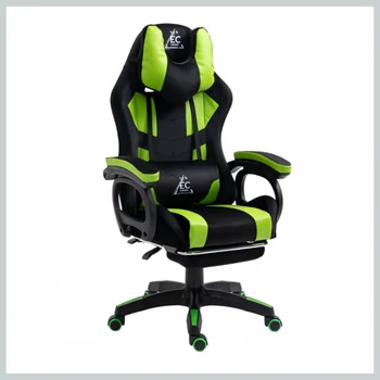 Otočná herná stolička "STUDENT" s podnožkou a masážnym vankúšom, zelená KO23ZIE