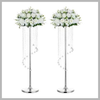 Svadobná centrálná dekorácia – 2 kusy, strieborná – QD89339-b