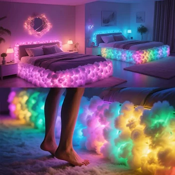 LED osvetlenie rámu postele s efektom oblakov – CY1936444