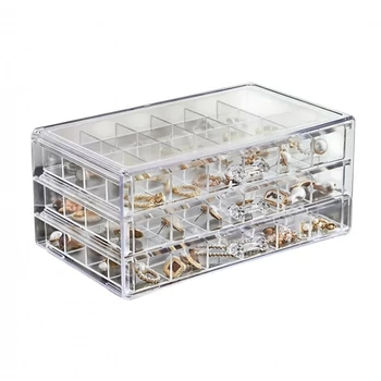Priehľadná Šperkovnica – 3 Zásuvky, 72 Priehradiek PD159B