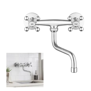 Nástenná dvojručková chrómová batéria k umývadlu – s pohyblivou výtokovou hubicou ADG_BKI_080D