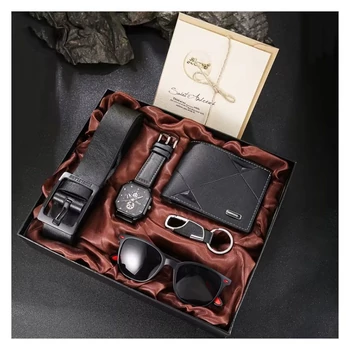 6-dielna klasická sada doplnkov z čiernej umelej kože pre mužov BM640980