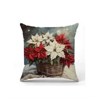Vianočný dekoratívny obal na vankúš – Vianočná hviezda s košíkom (45 × 45 cm) POD204