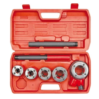 Súprava na rezanie závitov s račňovým pohonom – 7 dielov, 3/8„–1,1/4“ (5 hláv + račňa + rukoväť) TO-55820