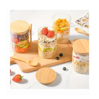 4 sklenené nádoby s bambusovými viečkami a lyžičkami – 600 ml EL4569209-2