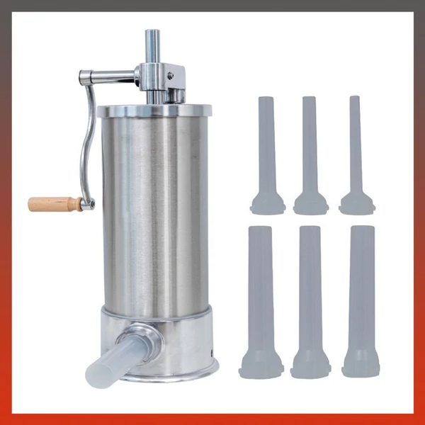 Tento stroj na plnenie klobás je ideálnou voľbou vďaka svojej pevnej konštrukcii a kovovej konštrukcii prevodu, ako aj hermeticky uzavretému silikónovému plastovému prítlačnému kotúču. Nerezová slučková nabíjačka môže byť stabilne upevnená na požadovanom mieste pomocou spojovacieho prvku. Dá sa rozobrať pre ľahké čistenie. Vzpriamený dizajn nielen šetrí miesto, ale je aj praktickou voľbou vďaka jednoduchému nabíjaniu.