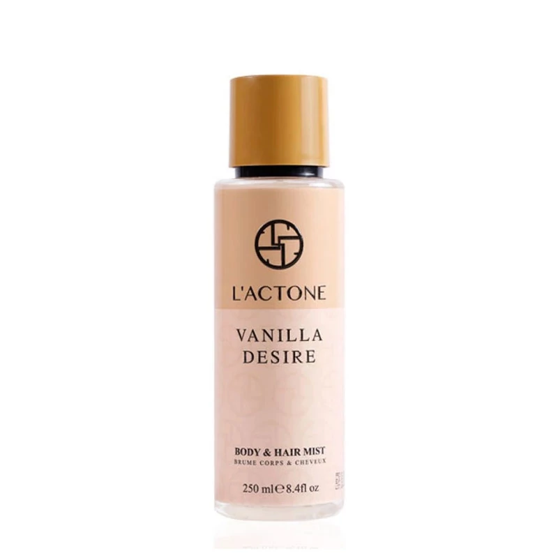 L’ACTONE Vanilla Desire Telový a vlasový sprej zahalí pokožku a vlasy jemnou, sladkou vôňou vanilky a poskytne im dlhotrvajúcu sviežosť. Teplá, krémová vôňa vytvára ženskú, sofistikovanú a zmyselnú vôňu, ktorá vás bude sprevádzať po celý deň.