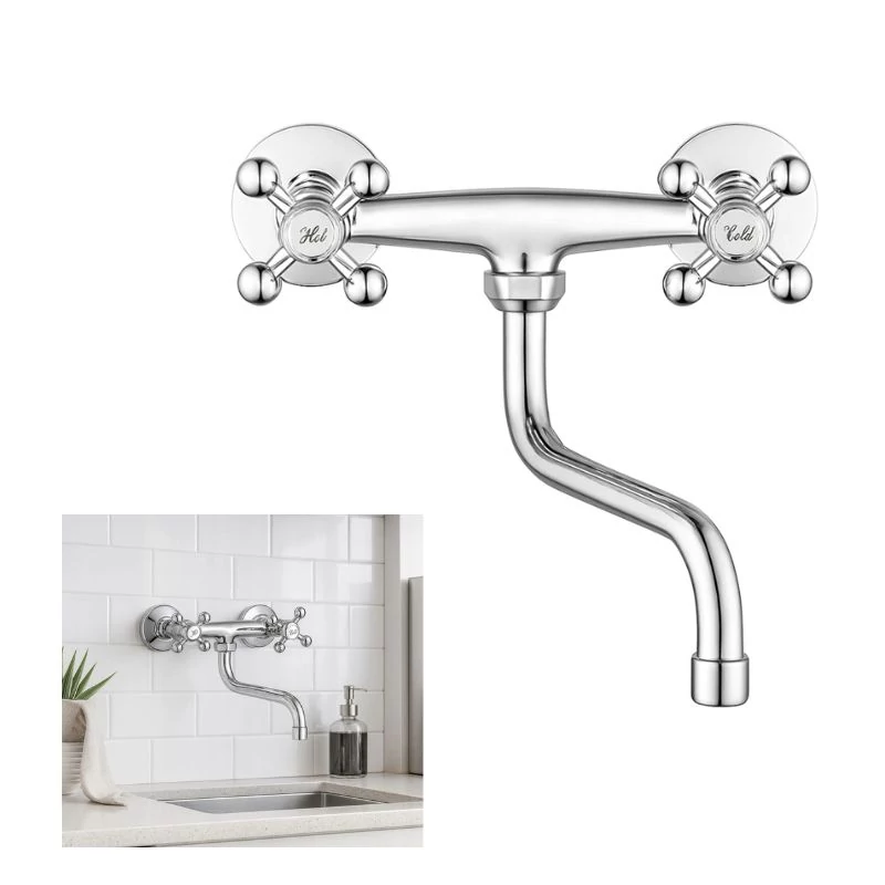 Táto elegantná nástenná batéria k umývadlu v retro štýle spája klasický vzhľad s modernou funkčnosťou. Dvojručkový batériový kohútik uľahčuje reguláciu teploty vody, zatiaľ čo pohyblivý výtok zaisťuje maximálne pohodlie pri každodennom používaní.