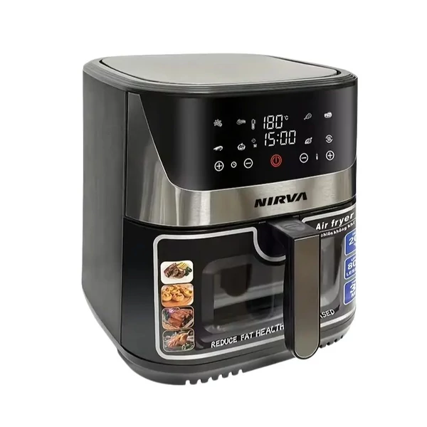 Teplovzdušná fritéza NIRVA s objemom 10 litrov a európskou zástrčkou je ideálnou voľbou pre väčšie rodiny. Moderné digitálne dotykové ovládanie ponúka prednastavené programy na prípravu hranoliek, hydiny, mäsa či rýb – všetko jedným dotykom.