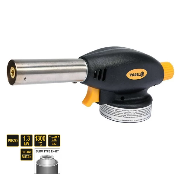 Tento plynový horák s piezoelektrickým zapaľovaním je spoľahlivé a praktické zariadenie, ktoré je možné pripojiť priamo k butánovej fľaši v súlade s normou EN417. Je ideálny pre domáce majstrovanie, prácu v dielni, použitie v kuchyni alebo na kempovaní.