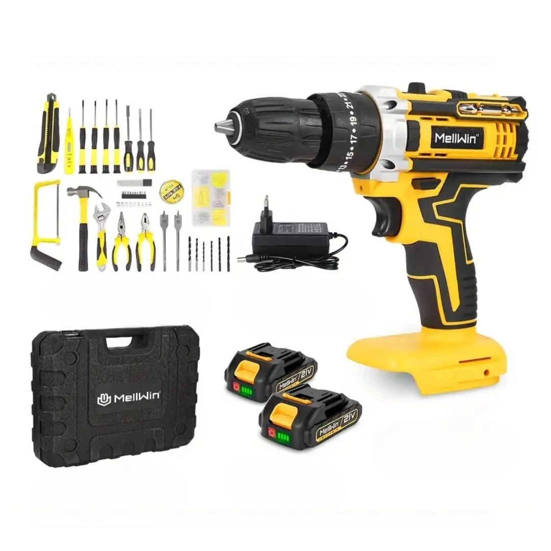 Sada akumulátorovej vŕtačky MellWin 21 V je ideálnou voľbou pre domáce majstrovanie aj profesionálnu prácu. Ergonomický dizajn tejto výkonnej akumulátorovej vŕtačky zaručuje pohodlné používanie, zatiaľ čo dve batérie zabezpečujú dlhšiu prevádzkovú dobu. Sada obsahuje 44 príslušenstiev a praktické plastové puzdro, takže máte všetky potrebné nástroje po ruke v jednom kompaktnom balení.