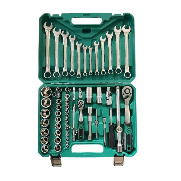 Táto 61-dielna sada nástrčných kľúčov a kľúčov je ideálnou voľbou pre opravy áut, strojov a domáce majstrovanie. Sada obsahuje dve rôzne veľkosti račňových rukovätí, otvorené kľúče, hlavice nástrčných kľúčov, predĺženia a adaptéry – všetko, čo potrebujete na presnú a efektívnu prácu.