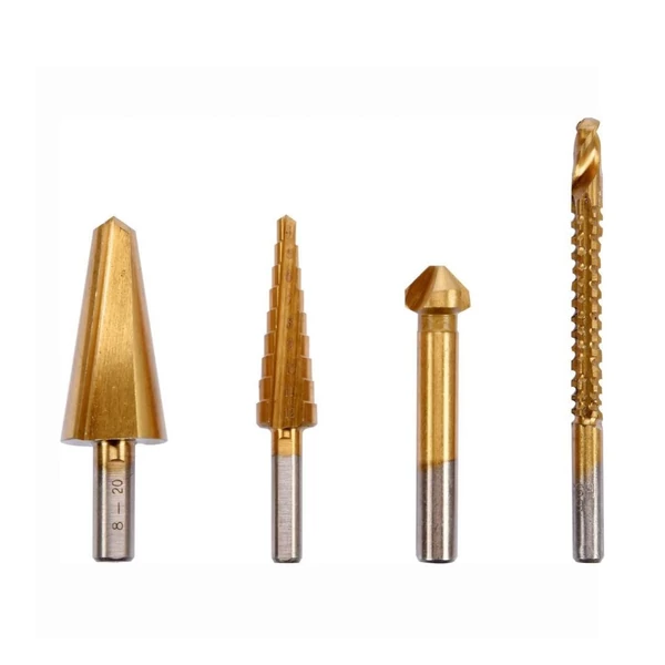 4-dielna univerzálna sada tvarových vrtákov obsahuje rôzne tvary vrtákov, ktoré sú vhodné aj na obrábanie tvrdenej a legovanej ocele. Vrtáky z HSS ocele s titánovým povlakom umožňujú presné vŕtanie otvorov.