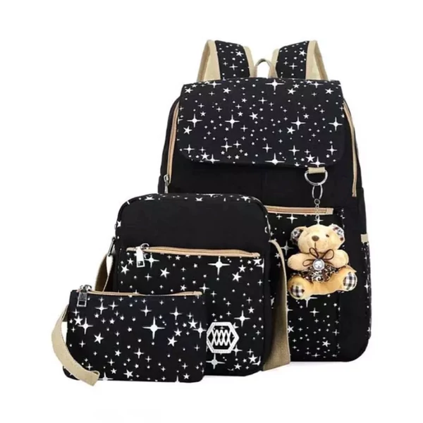 Školský set s hviezdičkami – 3-dielny, čierny KBL-1143-01-F
