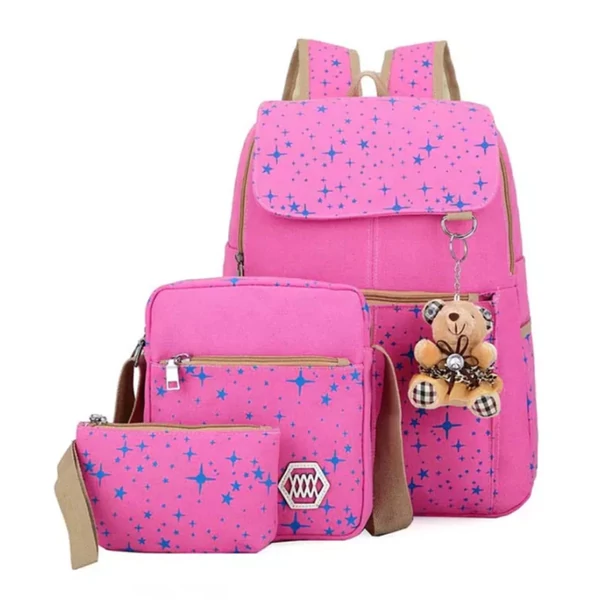 Tento trojdielny školský set v ružovej farbe s hviezdičkovým vzorom je skvelou voľbou pre školáčky, ktoré ocenia praktickosť aj štýlový vzhľad. Set obsahuje všetko, čo dieťa potrebuje na bežný školský deň – priestranný batoh, puzdro a tašku na prezúvky alebo telesnú výchovu.