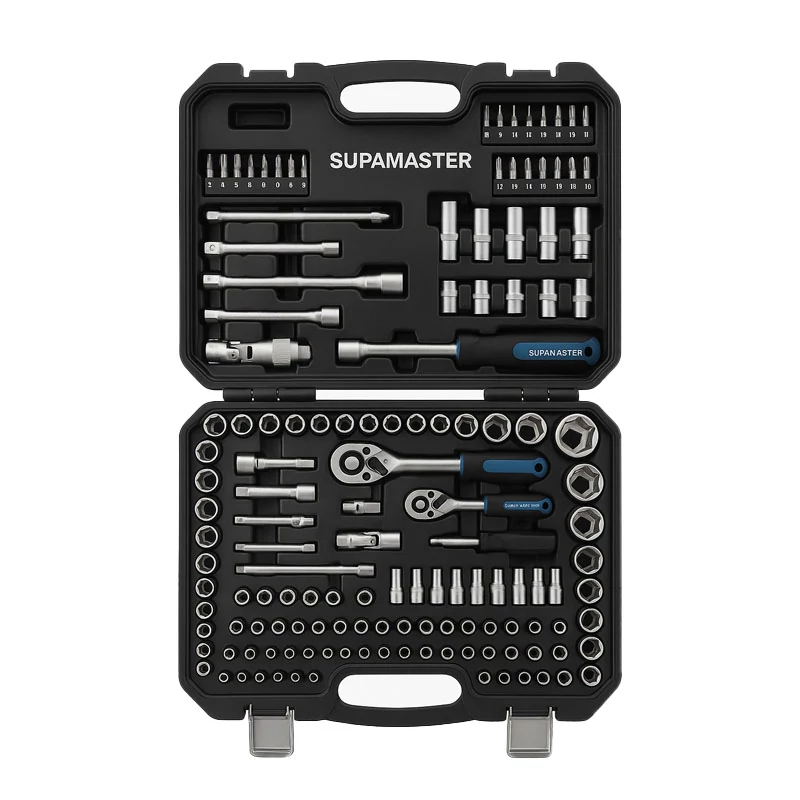 SUPAMASTER SM-2202 je profesionálna 202-dielna sada náradia, ideálna pre domácnosť aj dielňu. Obsahuje všetky základné ručné náradie potrebné pri montáži, údržbe alebo opravách. Vyrobená z odolných materiálov s ergonomickým dizajnom pre rýchlu a efektívnu prácu.