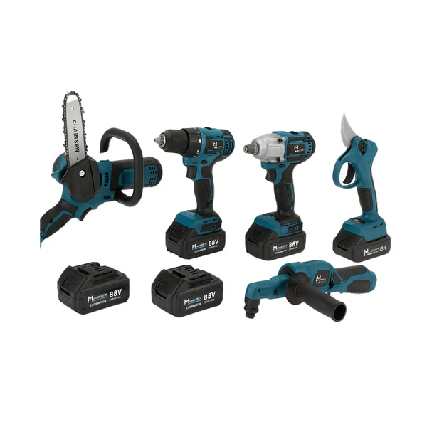 SUPAMASTER SM-555 je kompletná 5-v-1 akumulátorová sada náradia, ktorá obsahuje najdôležitejšie bezdrôtové zariadenia: vŕtačku, príklepovú skrutkovačku, uhlovú brúsku, mini reťazovú pílu a záhradné nožnice. Ideálna pre domácich majstrov aj profesionálov, ponúka všetko v jednej praktickej sade pre rýchlu a efektívnu prácu.