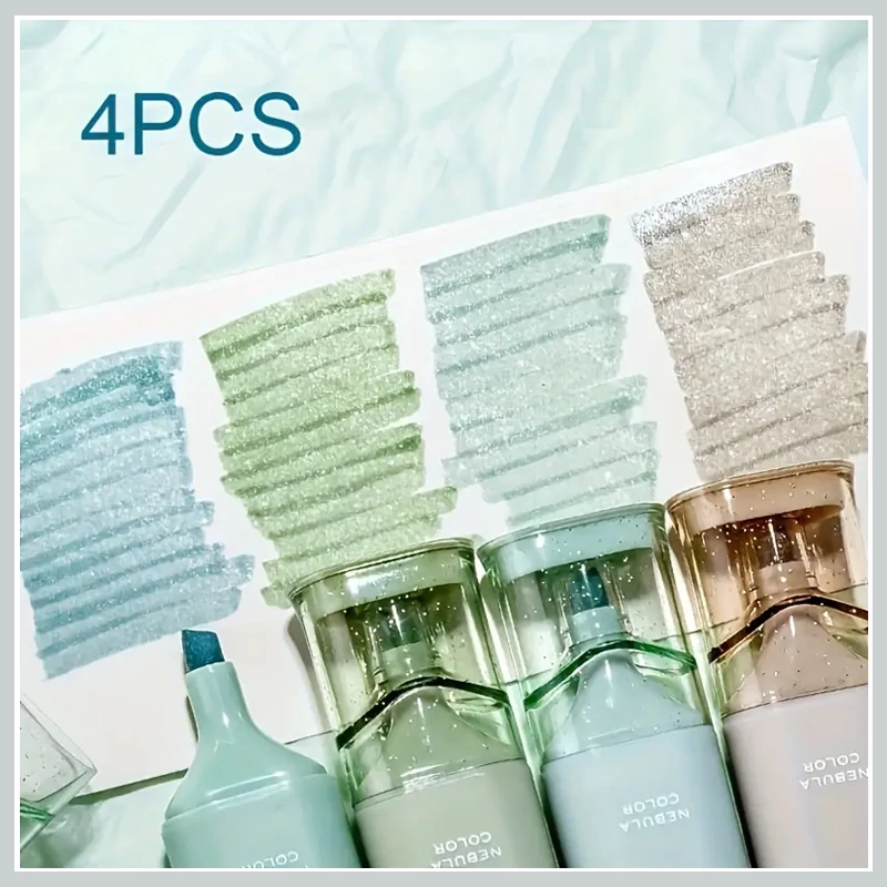 Súprava 4 trblietavých zvýrazňovačov – Nebula Color (zelené a pastelové odtiene) DW507694-zn