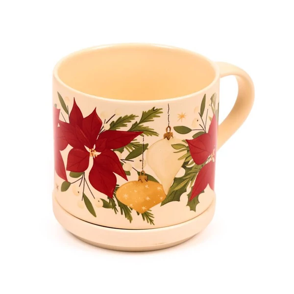 Naladi sa na sviatočnú atmosféru s touto elegantnou vianočnou súpravou hrnčeka s podložkou alebo viečkom, zdobenou motívmi vianočnej hviezdy a sezónnych rastlín! Porcelánový hrnček s objemom 420 ml je ideálny na kávu, čaj či horúcu čokoládu, zatiaľ čo praktická podložka môže slúžiť aj ako viečko na udržanie teploty nápoja.