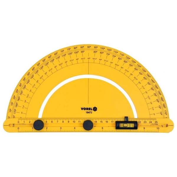 250 mm dlhý uhlomer vybavený pohyblivým ramenom, ktoré je možné pevne zaistiť pomocou skrutiek. Praktický nástroj na presné meranie a označovanie uhlov pri stavebných, renovačných a stolárskych prácach.