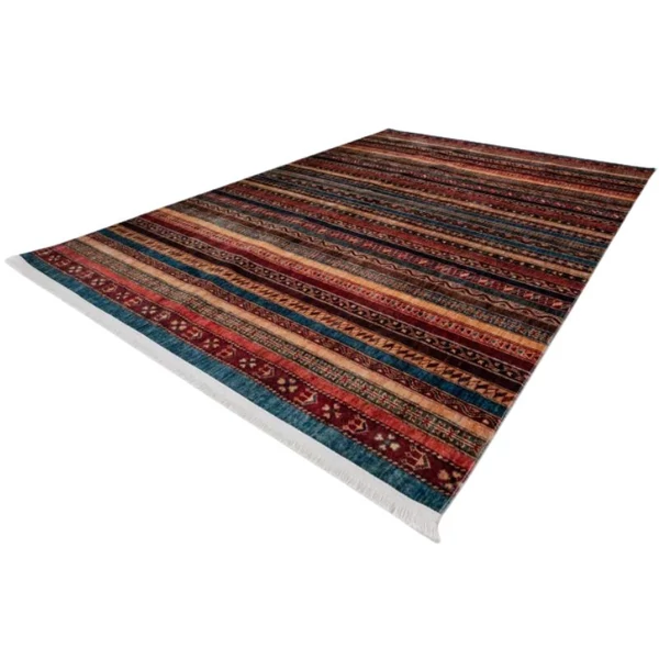 Koberec Velvet 923 kombinuje tradičné orientálne motívy s modernými farbami. Jeho sýte červené, modré a hnedé tóny vytvárajú teplú, útulnú atmosféru, zatiaľ čo krátky vlas a príjemná textúra zaručujú pohodlie a eleganciu v každej miestnosti.