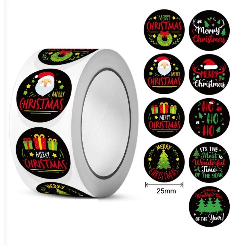 Vianočná sada samolepiacich nálepiek – 500 ks, 25 mm NNK17