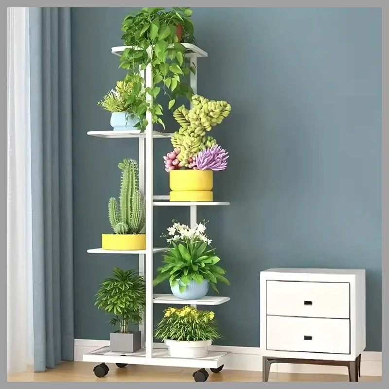 Tento 6-poschodový kovový kvetinový stojan je ideálnou voľbou pre všetkých, ktorí chcú svoje rastliny prakticky zorganizovať a zároveň esteticky vystaviť. Moderný biely rám s práškovým nástrekom dodáva priestoru elegantný vzhľad, zatiaľ čo pevná kovová konštrukcia zaručuje dlhodobé a spoľahlivé použitie – či už v interiéri, alebo exteriéri.